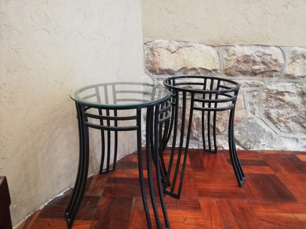 Glass and metal tables